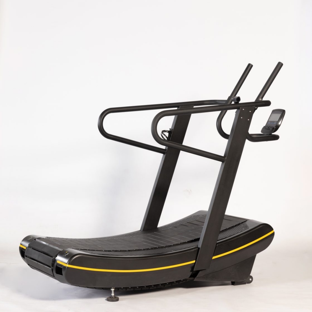 当社の湾曲した非電動トレッドミルは、自然な走行歩行に従い、関節への衝撃を軽減します。調整可能な負荷により、インターバルトレーニング用の平坦な状態と上り坂の状態をシミュレートします。輸送ホイールと滑り止めハンドルを備えているため、柔軟で、HYROX トレーニング ゾーンに簡単に配置できます。